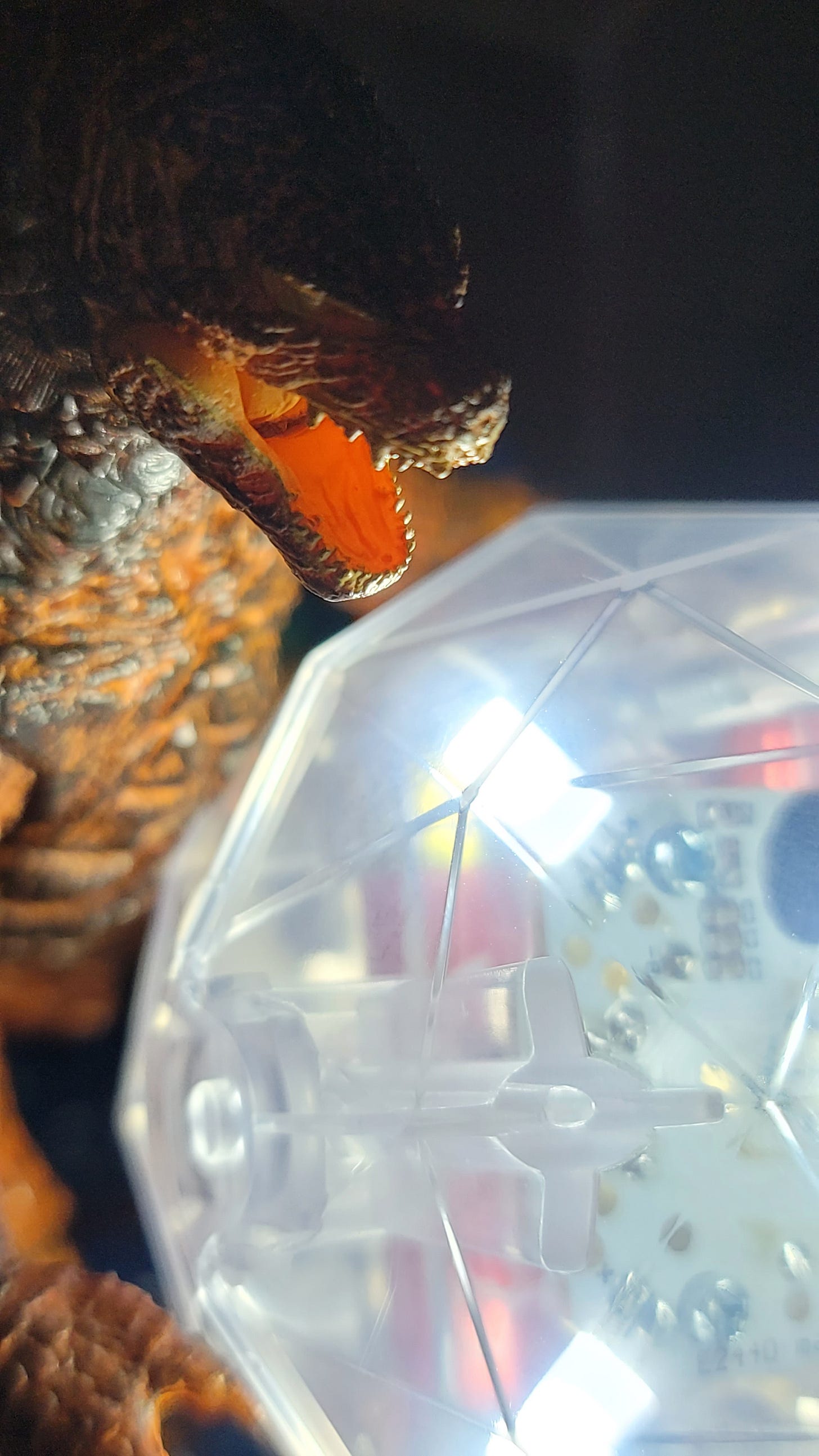 I hadn’t realized that the Hiya Burning Godzilla aka Burnie'’s head had an articulated jaw with a moveable tongue. I mentioned some small disappointment with the figure’s articulation but this small bit of articulation absolutely turn whatever frown I had upside down. Thanks to Steven’s Toy Reviews for the tip off, as well as showing me how to play with my Hiya toys better.