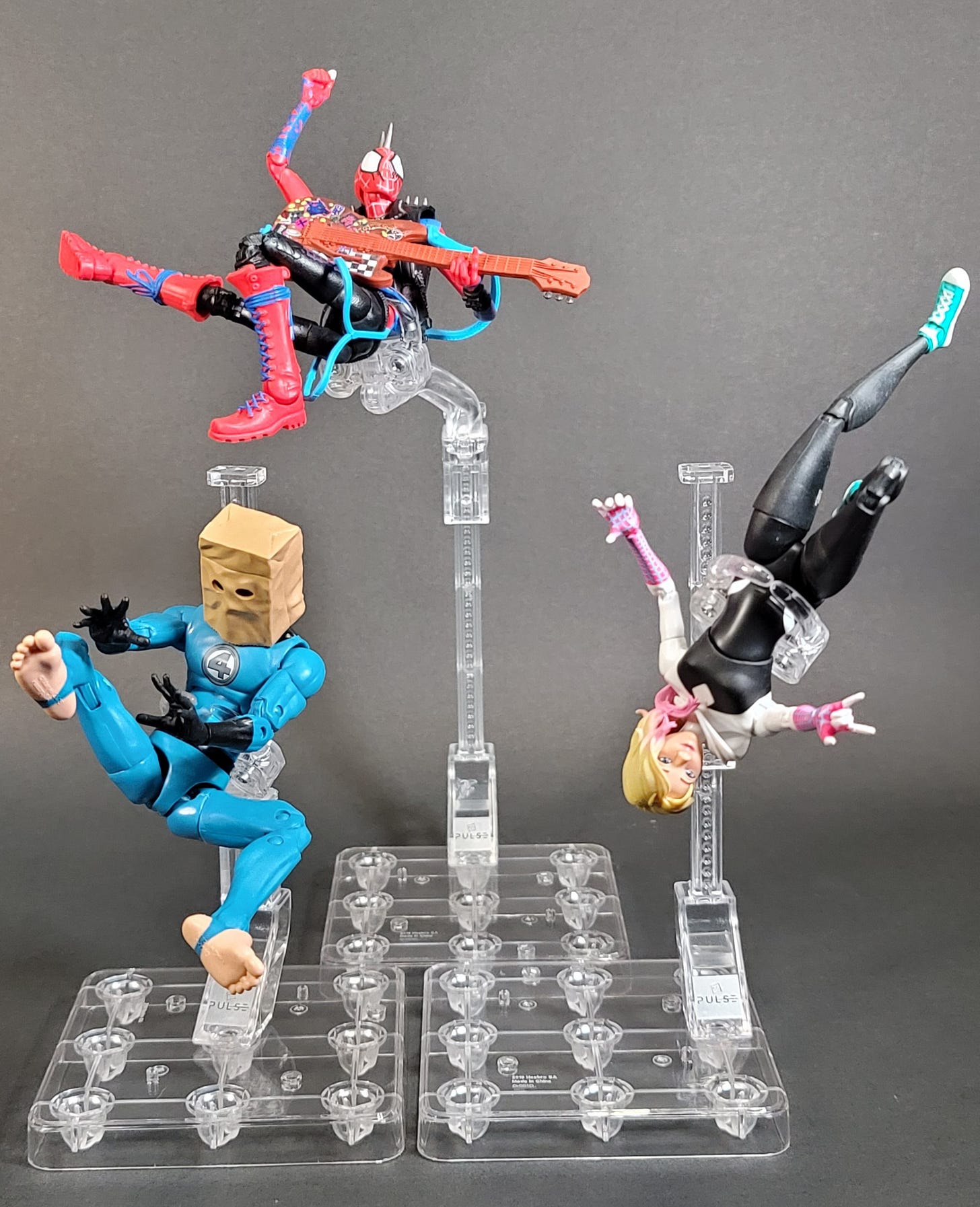 What inspired me to pick up these stands was my recent Toys’R’Us clearance sale binge that netted me three new Spiders-man (and woman). Posing a Spider-person on a shelf is fine but it’s not very dynamic, and Spiders-persons are supposed to be dynamic.
