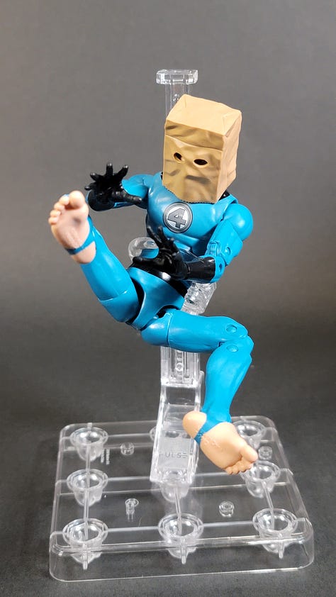 Had I bothered to pull the Black Widow and her stand off the shelf and give it a play around, I would have ordered a half-dozen 3-packs of these “poseable action figure stands”. They’re kind of awesome, and I completely used up the three stands in one pretty swift go.