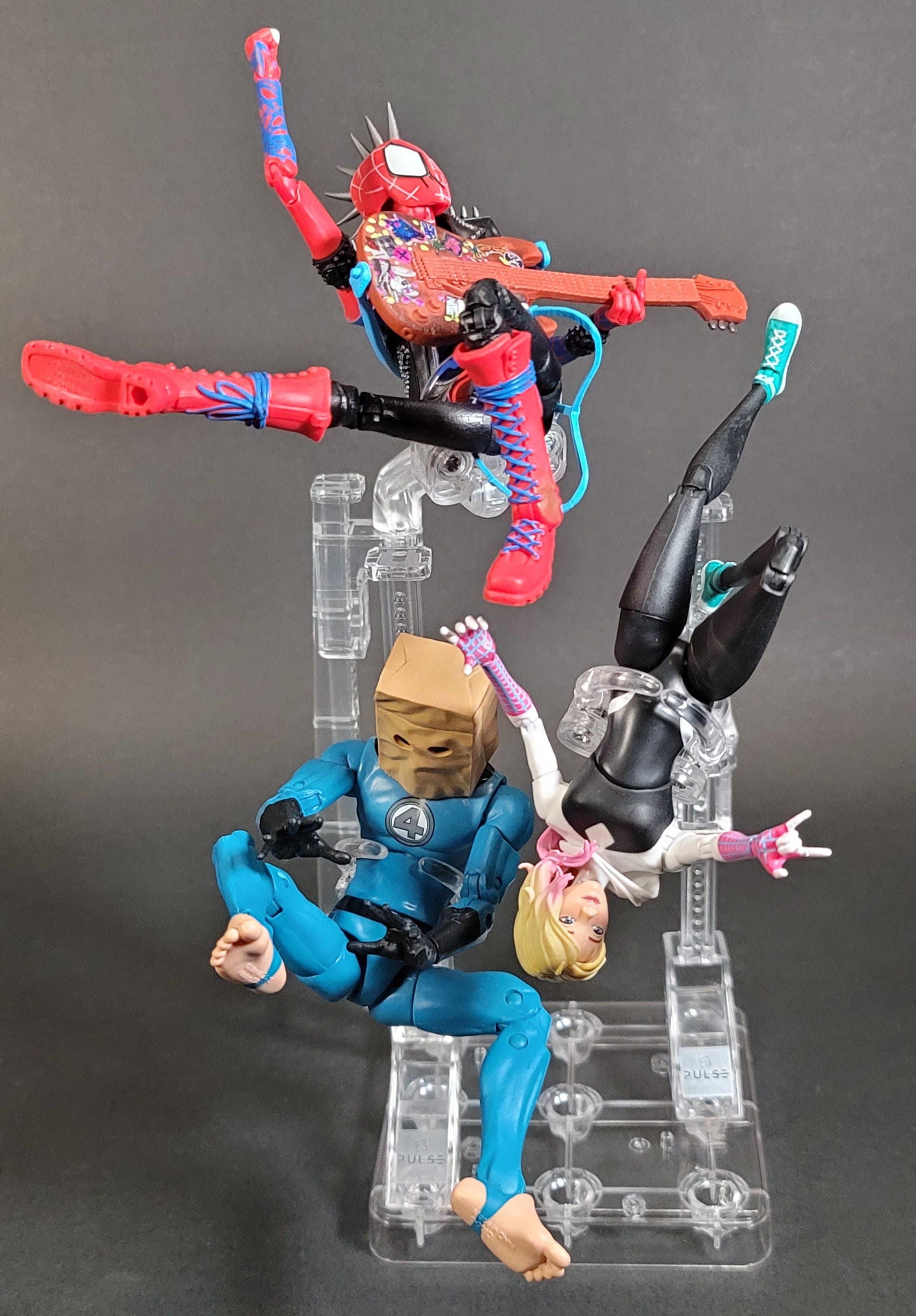 With the modularity of the figure stands - the placements on the base, the height adjustments, whether you use the extender arm or not, your left/right swing and vertical tilt… you’re able to get a density that allows each figure to exist on the same base. It feels like a Spider-verse comic cover, or at least the start of one.