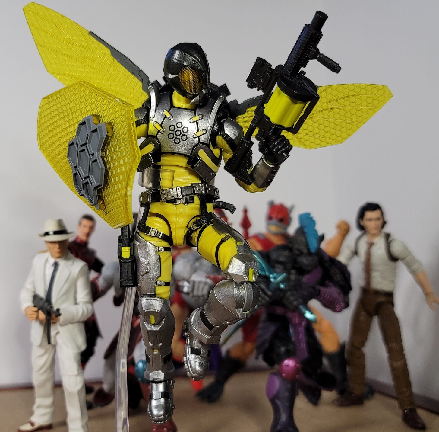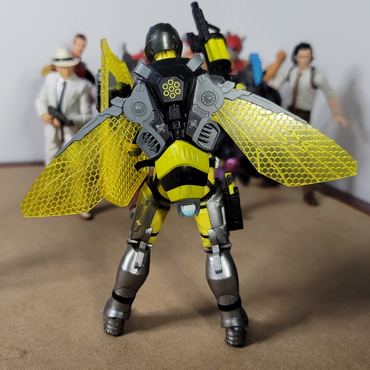 The promo pic of this guy with the Gear Set though is what made him a must-have. The translucent yellow wings and that riot shield with the honeycomb pattern, *smacks lips* tastes like honey.
