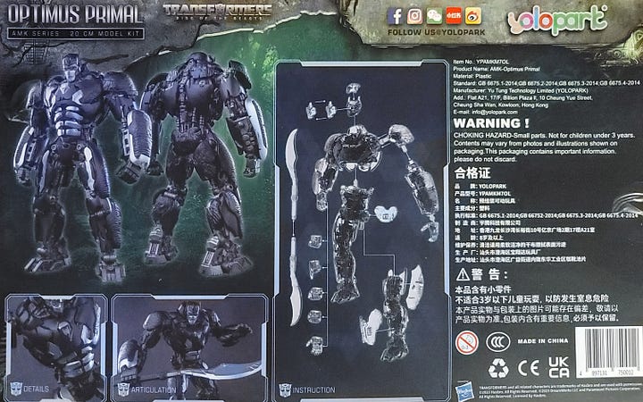 But I love me a gorilla, even one that’s a robot who transforms into a gorilla, so I eyed up various versions of Optimus Primal, and for some reason the YoloPark model kit stood out to me. Jumped out at me even.