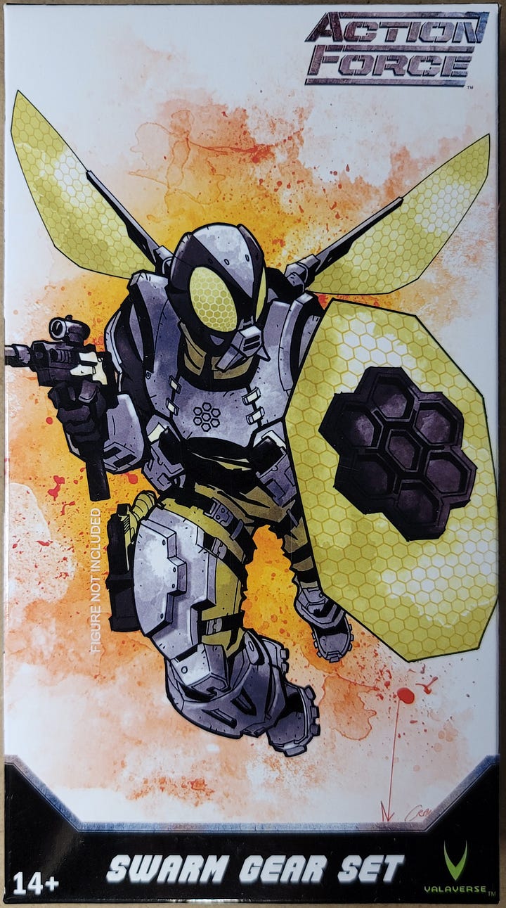 I would like to army build these guys but at $50 (CAD) a piece plus another $25 for the Gear, it’s priced out of Army Build territory. If there’s a female SWARM figure, I’ll probably pick that one up. I see there’s another SWARM figure out there which is more a shiny gold than yellow, but it doesn’t appeal to me as much as the candy yellow. I’ll still keep an eye on the Valaverse releases even though I’ve yet to see a non-SWARM Action Force figure that appeals to me enough to drop the $50, but I just like looking at toys.
