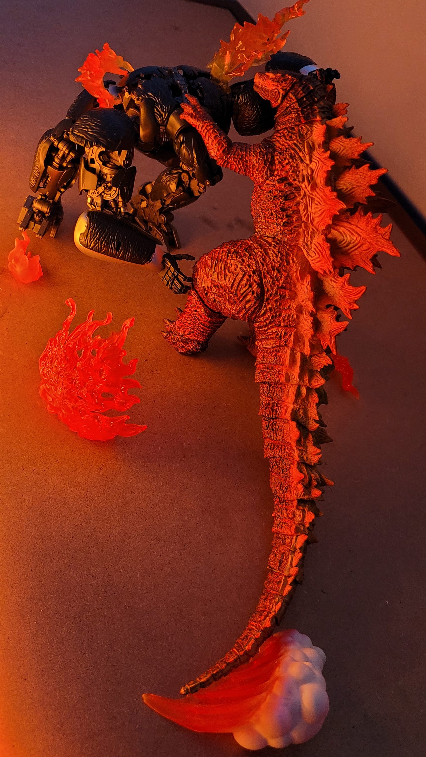 While I was playing with them, I started wishing I had a little miniature town to bash them around in, but now that they’re up on the shelf, I don’t know that I want to pull them down and play with them, which makes me sad. I wanted to love them for more than being pretty. I started eyeing up other Exquisite Basic Monsterverse figures (Mothra! MUTO!) but now am not so sure….