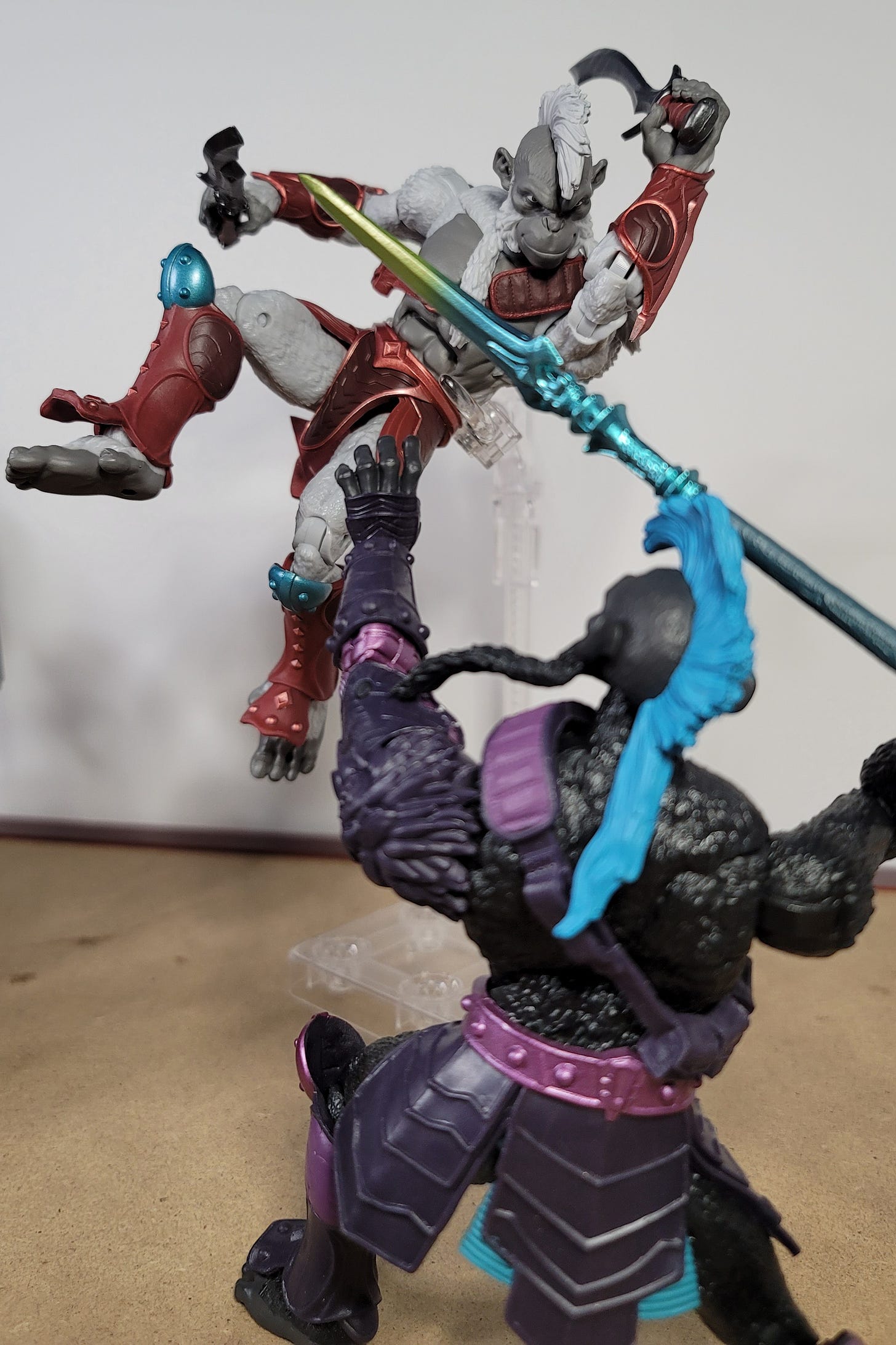 They have the same great articulation as all AWOK figures do, and the ape feet have an extra sturdiness to them. I just don’t like that the mohawks impede head movement (though I don’t dislike the aesthetic…).