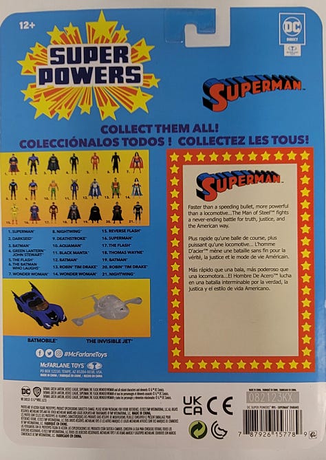 The original Super Powers line wound up with 33 figures over 3 years. We’re at 24 with McFarlane in around 18 months. That should be more exciting than it is.