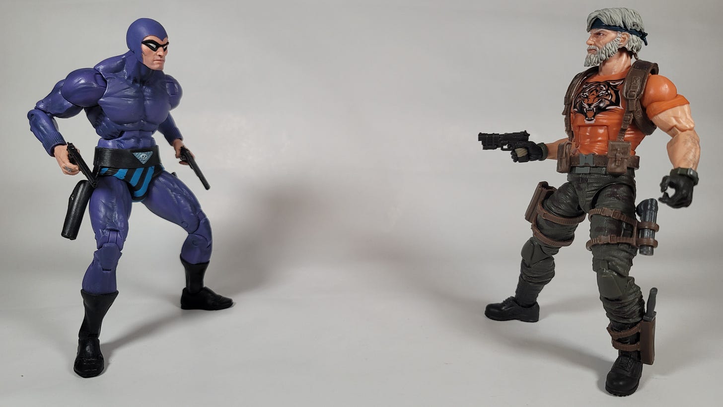 I have no attachment to the character, like, at all. I don’t think I’ve ever read a Phantom comic or pulp story. But, was it in 2021 that Dan Larson (Toy Galaxy) had Neca’s Defenders of the Earth Phantom in his top ten list at some point during the year? Whenever it was I saw the figure in his video and just knew I had to have one. I pre-ordered one, and a year later my pre-order was cancelled. I had seen the Defenders of the Earth wave reissued, but I kept missing out on The Phantom. But a while after pre-ordering the DotE Phantom, a new Phantom, as part of the Original Superheroes line, was promoed. Sporting a darker suit, and those blue and black striped overundies, I really wanted this one more than the DotE. But surely I didn’t need two Phantoms. By the time my DotE Phantom preorder was cancelled, the Original Superheroes Phantom preorders were already sold out. Sigh.