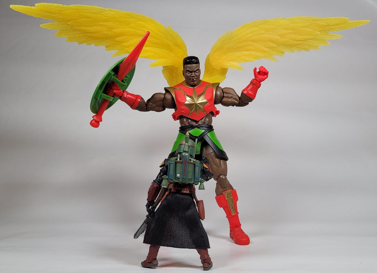 For the Masterverse line, they reinvented Sun-Man’s look with a bit more of an African warrior vibe, adding green and black to the colour scheme, and a very cool…erm…half-kilt thing (not sure what they’re actually called). They gave Sun-Man a hi-top fade and updated his chest emblem, turning his yellows on his uniform into gold armored pieces. It all combines beautifully, he’s a great looking character. But what gets him on the list is those wings.